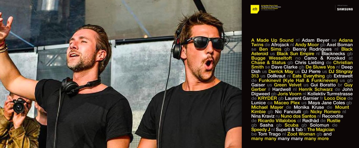 ADE Festival is also taking shape with acts already announced including Adam Beyer, Afrojack, Ben Sims, Blond:ish, Carlo Lio, Chase & Status, Christian Smith, Clouds, Coyu, Deetron, DJ Q, Dosem, Dubfire, DVS1, Edwin Oosterwal, Estroe, Funkinevil (Kyle Hall & Funkineven), Gaiser, Green Velvet, Gui Boratto, Hardwell, Hot Since 82, ISIS, Maya Jane Coles, and Pan-Pot